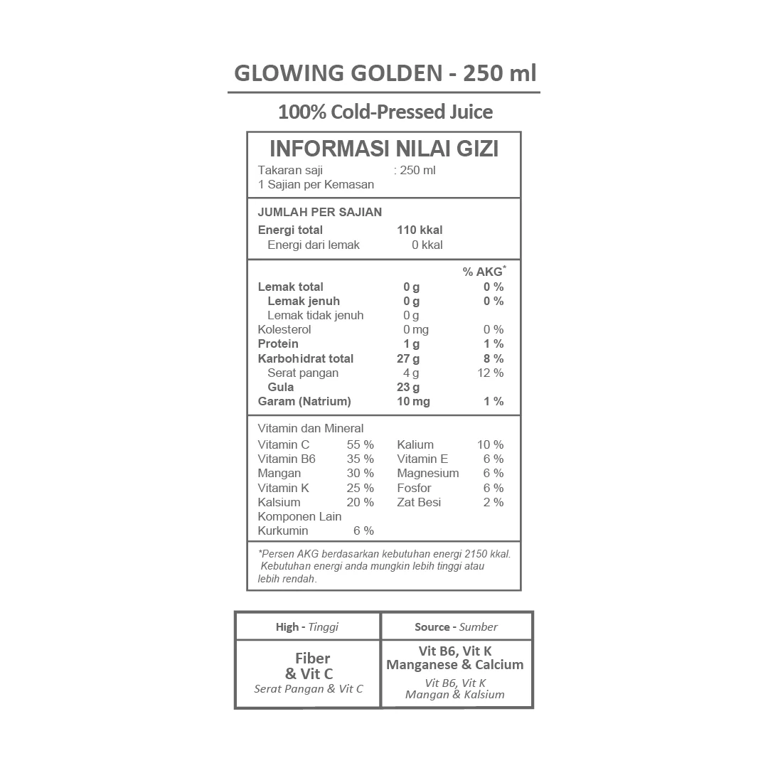 Our Glowing Golden contains curcumin from turmeric. Curcumin are known with its anti-inflammatory properties.